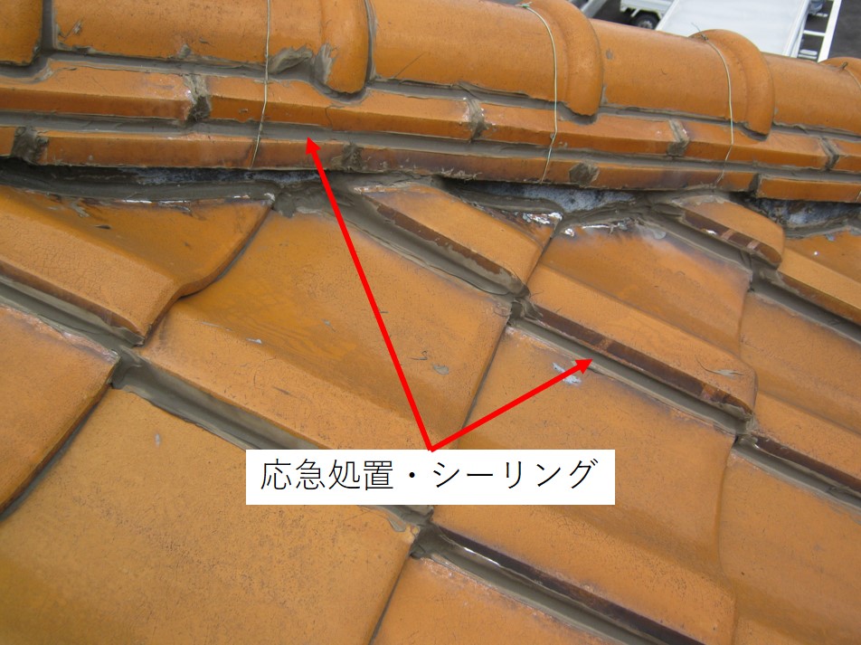 屋根でのコーキング剤の応急処置を行うこともありますが、雨漏りが完全に止まることは少ないです。