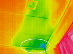 赤外線サーモグラフィで熱画像を確認しましたが乾いているようで、雨漏りによる温度低下はありませんでした。