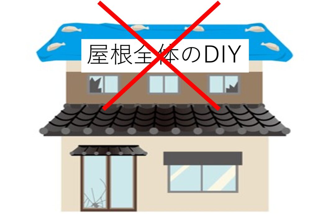 屋根全体をブルーシートで被うことは作業中に落下するリスクが高いのでオススメできません。