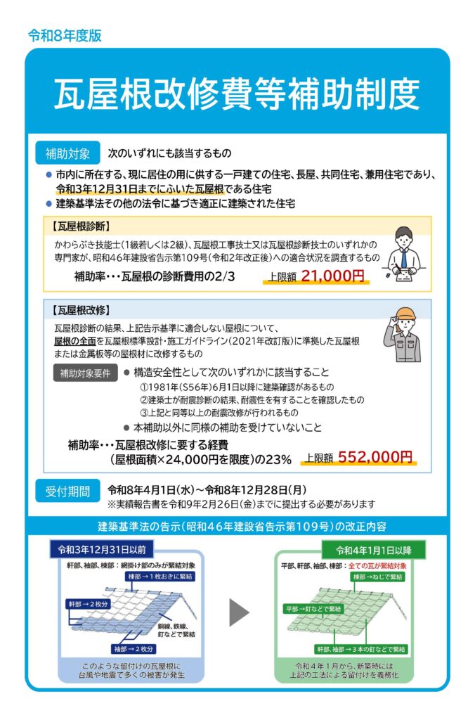 令和3年12月31日までにふいた瓦屋根で市内に所在し、現に居住の用に供する住宅