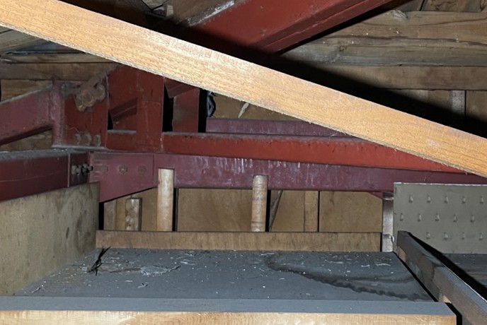 屋根裏に上がって天井材を踏むと踏み抜いて屋根裏から落下するリスクがあります。
