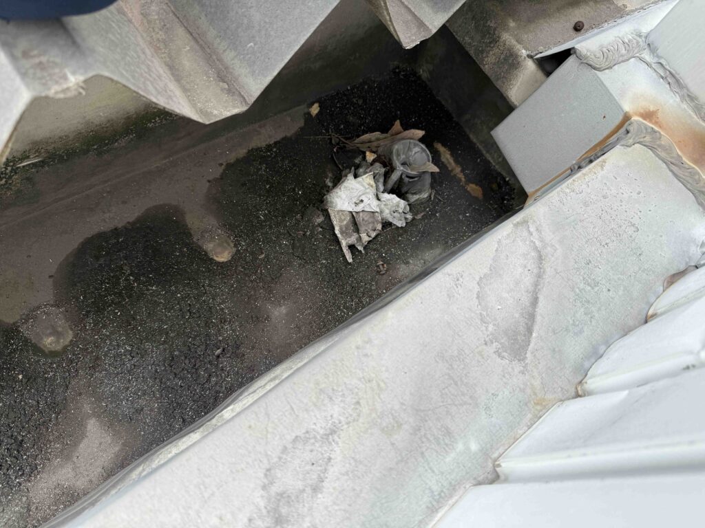 大きな樋などでは、飛来してきた人工物(ビニール袋・ボール)が落とし口をふさいで詰まることがあります。