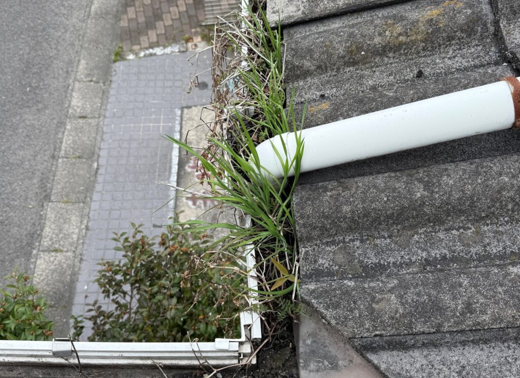 軒樋から草が生えている場合は、取り除く土の量が多くDIYでは危険な作業となります。