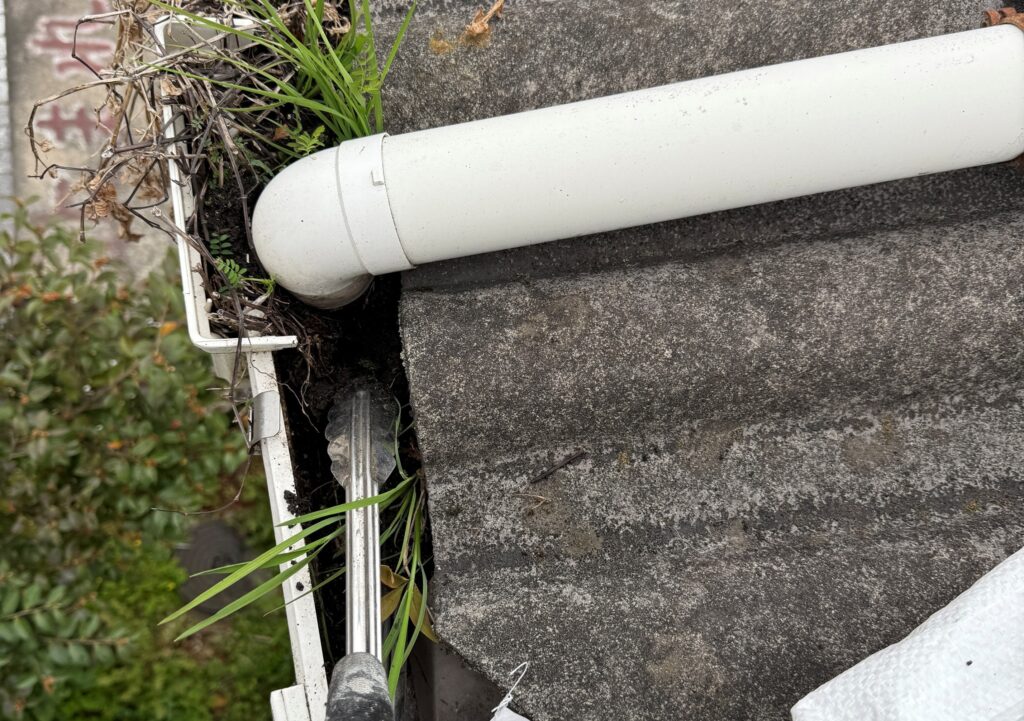 パイプクリーナーを奥まで突っ込んだ場合、雨樋のヒビ割れがないか確認できるので、再度水を流して確認することをオススメします。