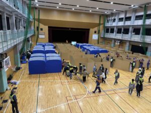 防災倉庫からメインアリーナに運び出します。