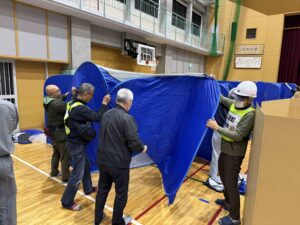 パーテーションの設置訓練です。