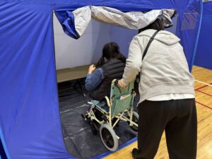 車いすの方にもパーテーションを