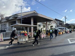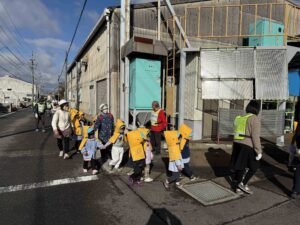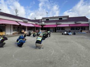 企業の皆さんやサポートチームは園児達の避難誘導を
