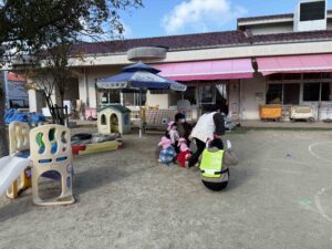 方に園庭に入っていただき、緊急地震速報を鳴らして