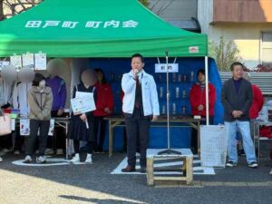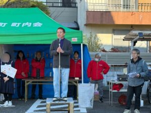 前沢さんのあいさつ、高浜南部まちづくり協議会