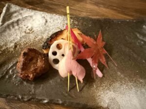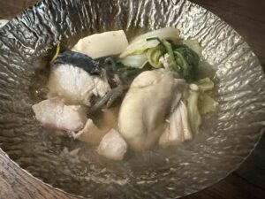 春菊のほろ苦さと茶碗蒸しの卵の甘さが