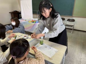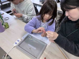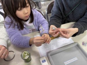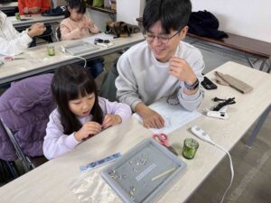 港小学区おやじの会で親子サンキャッチャーツリー作りを