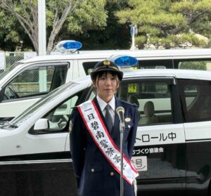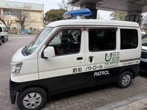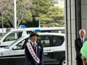 青色回転灯を点灯して碧南・高浜市内を防犯パトロールです。