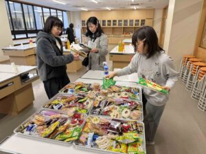 お菓子を分けたり紙皿やコップをテーブルに