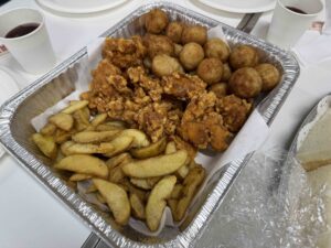 サンドウィッチにから揚げとポテト・たこ焼き揚げも