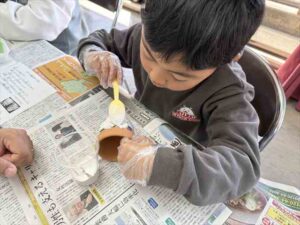 おやじの会 オリジナル鉢作りです・・・
