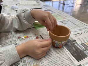 植木鉢に自分好みのタイルを張ってオリジナルの