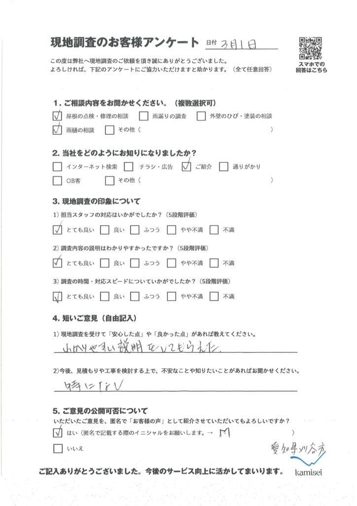 現地調査アンケート掲載:【愛知県刈谷市】M様「わかりやすい説明をしてもらえた。」