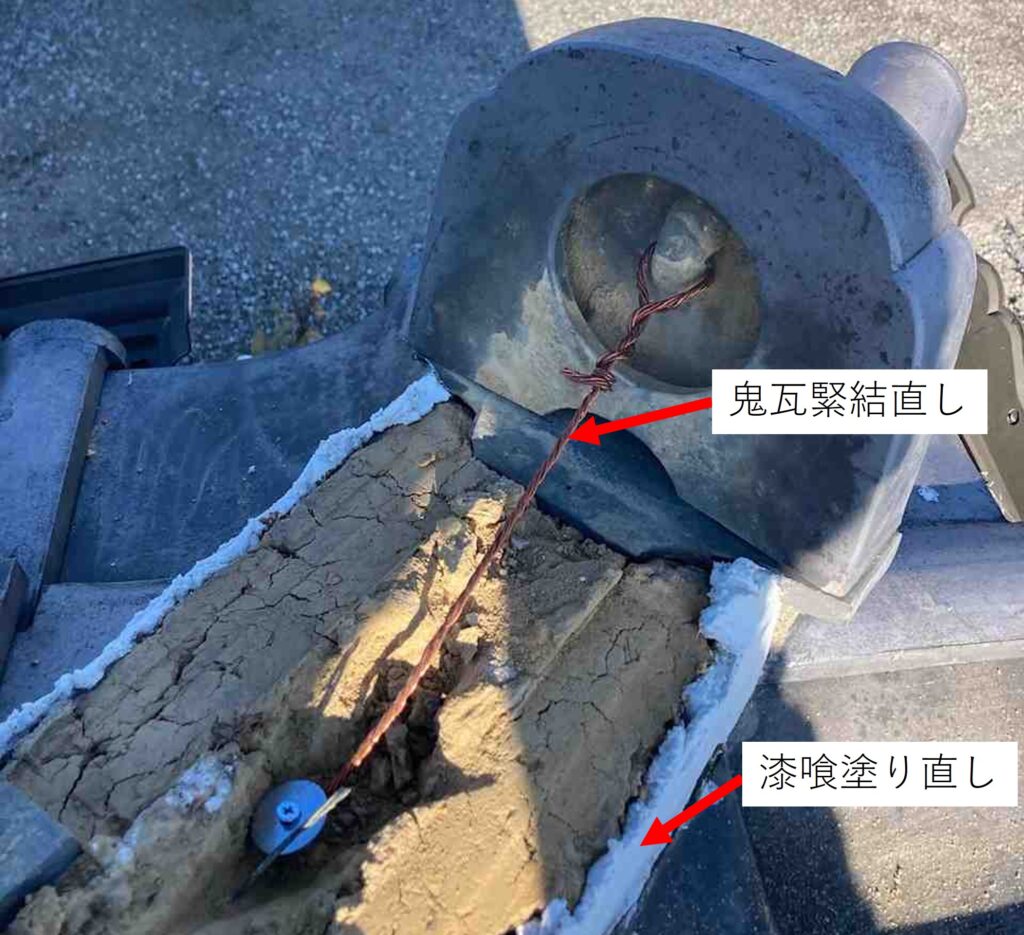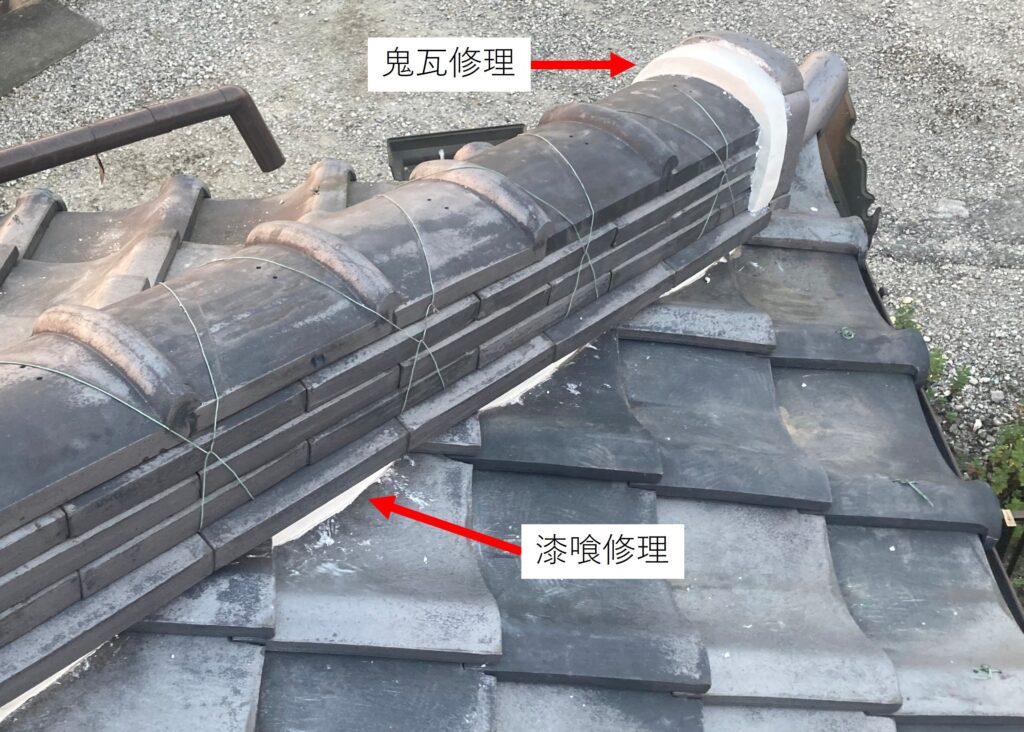 内容:鬼瓦ズレ直し、漆喰塗り直しの修繕工事