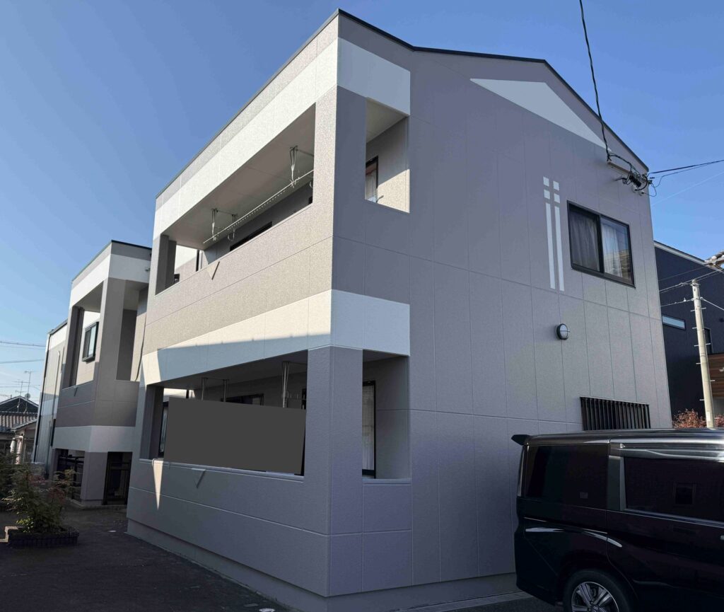 感想:外壁塗装・ベランダ防水層の劣化があり、塗装・防水工事を行いました。賃貸物件は経年劣化を放置してしまうと入居率が下がる傾向があるようです。定期的なメンテナンスの修繕工事が必要になります。職人の協力できれいに仕上げることができました。